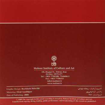 ما در خلوت، آواز بیات ترک، تصنیف باده، تصنیف بیات ترک، از کفم رها، تصنیف افشاری، هنگام می و، باشد از لعل تو، همایون ضربی، آواز مخالف سه گاه، هرکه را که بخت، ای آیتی ز رویت، آواز ماهور، تصنیف ادیبی، صحبت استاد دوامی دربارهی عارف قزوینی
